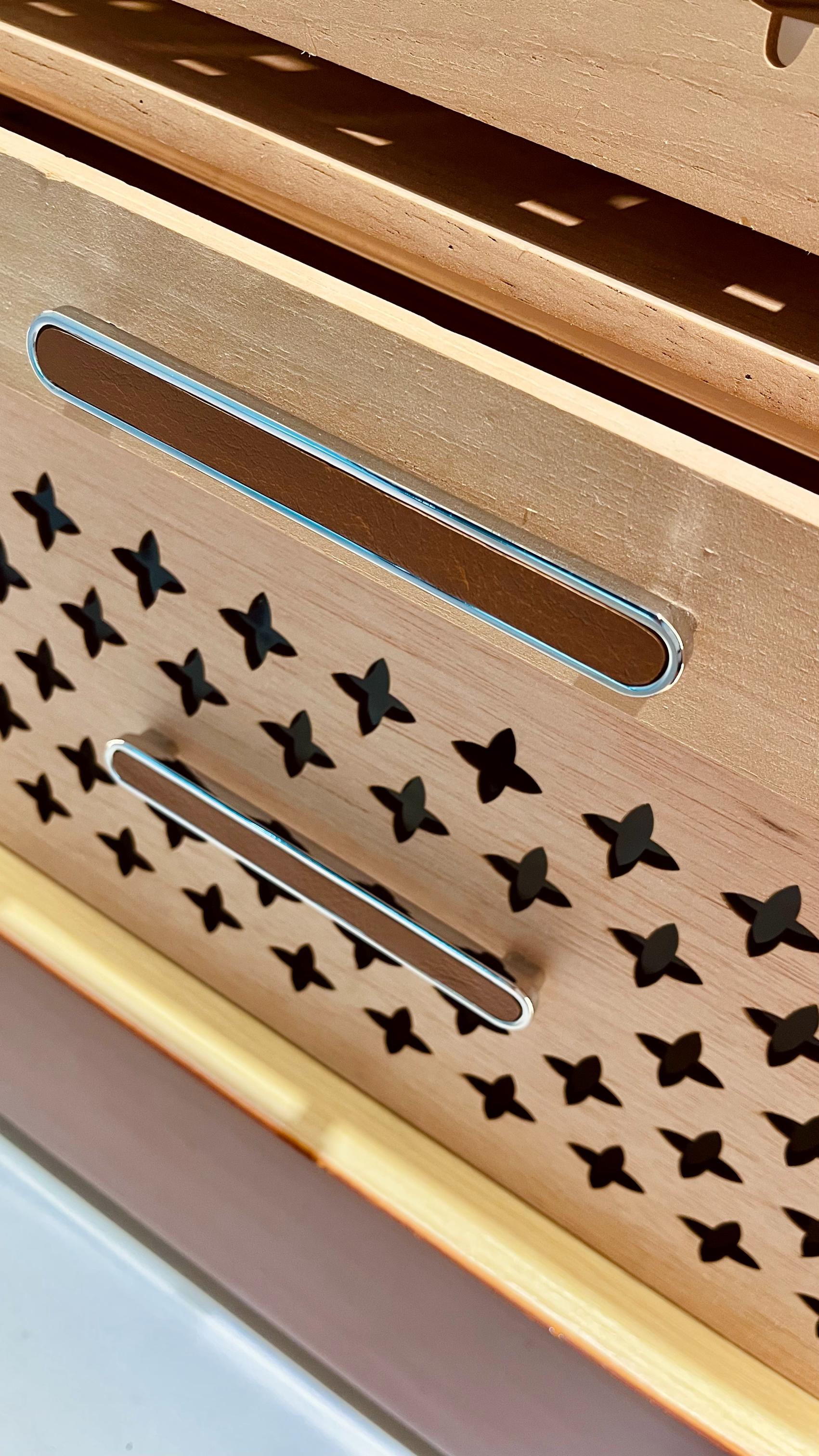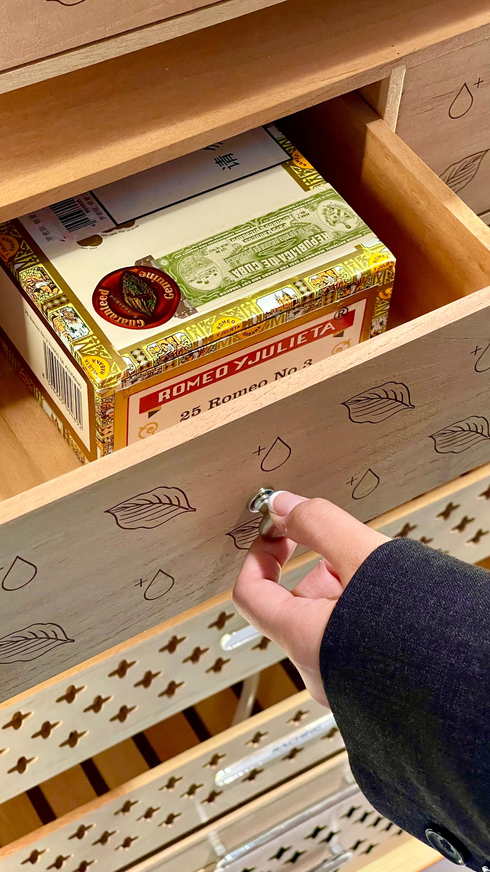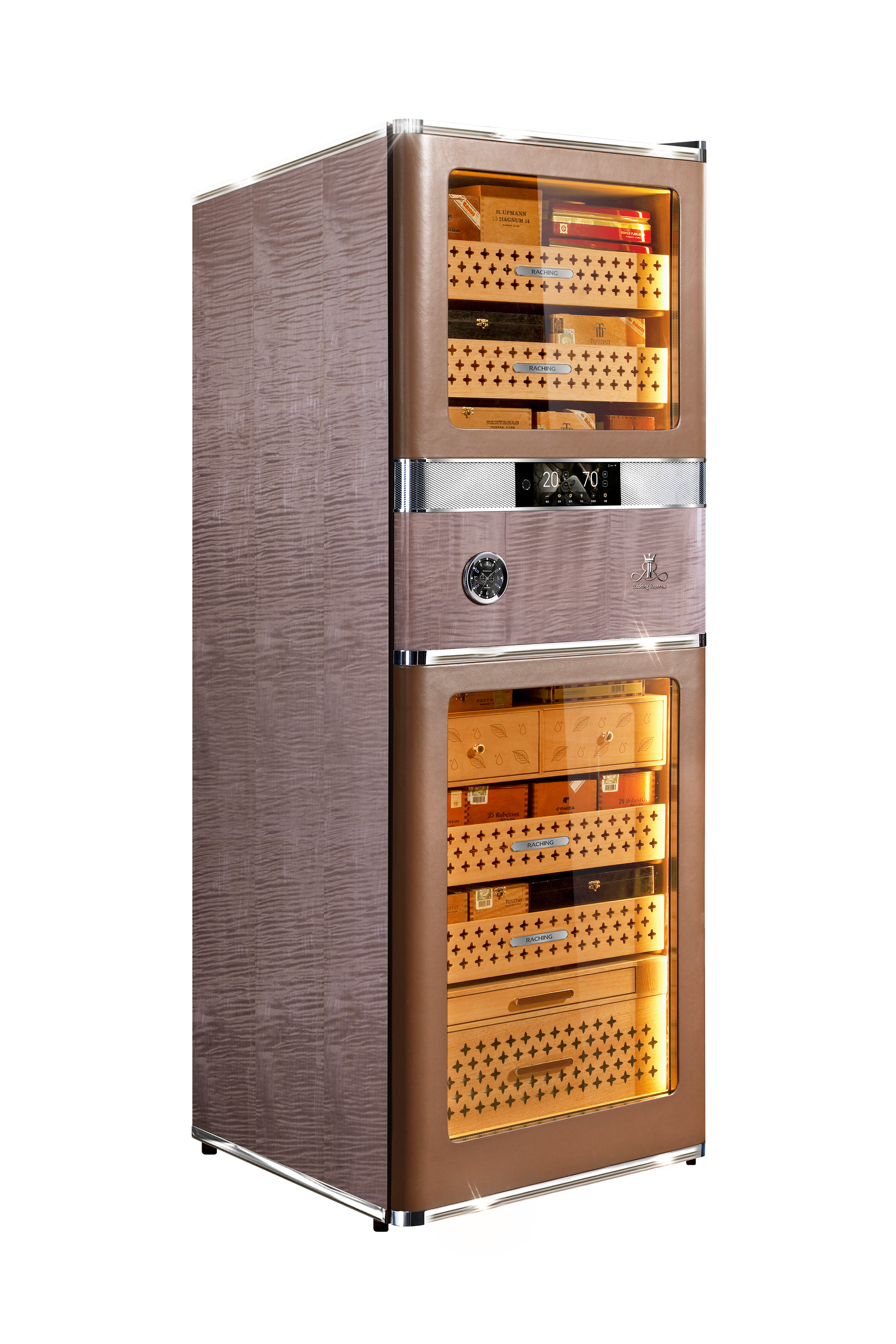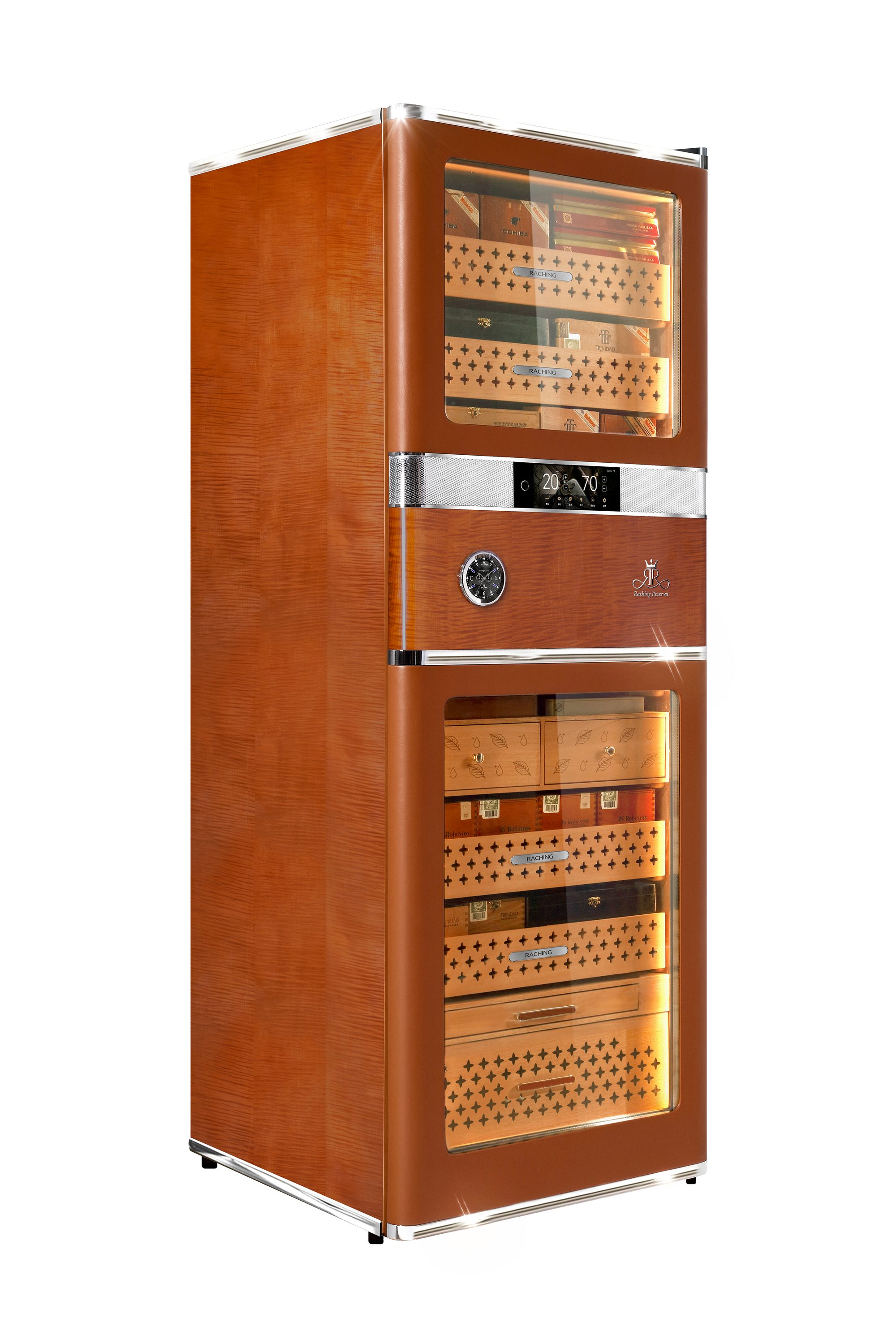 Advanced molecular humidification and intelligent temperature control maintain humidity within ±1% accuracy, while an industry-first cigar-draw resistance detection function helps ensure each cigar ages and performs as intended. Wi-Fi-enabled smart controls enable real-time monitoring and remote adjustment, supported by RFID-based smart locking, ammonia removal, Wi-Fi sensors, and an anti-algae water tank to safeguard your collection around the clock.